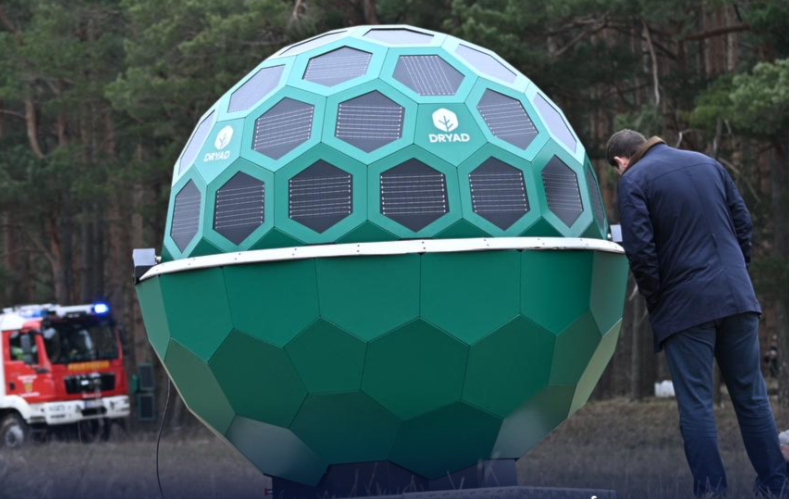 كشفت شركة "درياد" الألمانية النقاب عن تقنية مبتكرة لمكافحة حرائق الغابات، تتمثّل في كرة خضراء ضخمة تشبه كرة الغولف العملاقة، مزودة بألواح شمسية وتحتوي على طائرة مسيّرة تعمل بالذكاء الاصطناعي، يجري تطويرها لتكون قادرة على رصد الحرائق وإطفائها في غضون دقائق، وذلك في ظل تفاقم هذه الكوارث بسبب ارتفاع درجات الحرارة العالمية الناجم عن التغيّر المناخي.